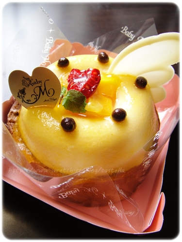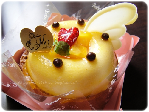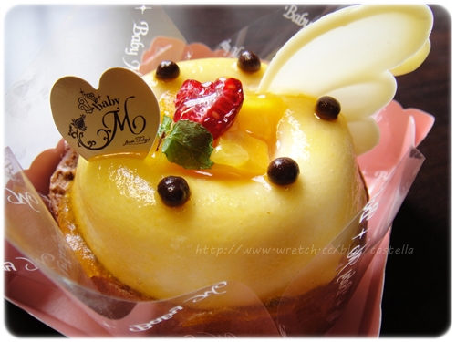 猶豫了好久 總算選定了一款 下層是生巧克力的蛋糕捲 上面是百香果的穆斯